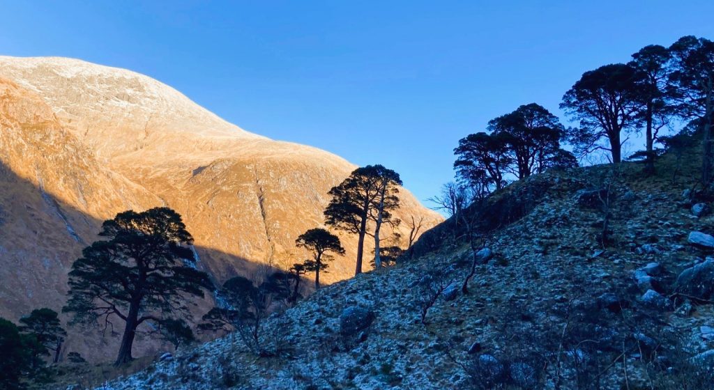 Caledonian pines in Glen Nevis located within the JAHAMA native woodland regeneration area